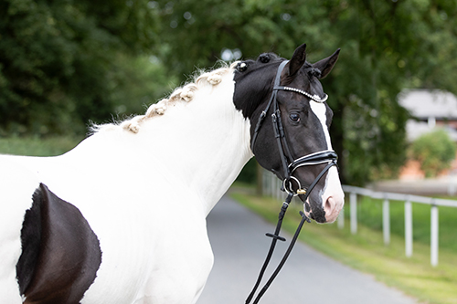 Dieser bildschöne, reinerbige Dunkelbraunscheckhengst wurde im Dezember 2020 für das Zuchtbuch Deutsches Pferd des ZfdP gekört und hat inzwischen erfolgreich seine Hengstleistungsprüfung (50-Tage-Test Dressur in Adelheidsdorf) absolviert. Er ist damit lebenslang im Hengstbuch I "Deutsches Pferd" des ZfdP eingetragen, seine Fohlen können auf Wunsch auch volle Papiere diverser anderer deutscher Warmblutzuchtverbände erhalten (a.A.).