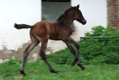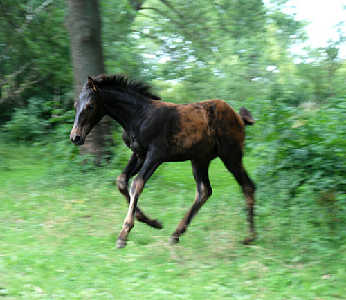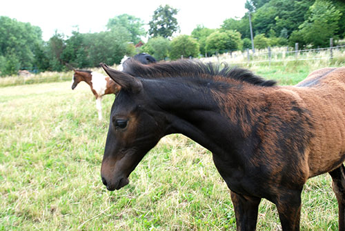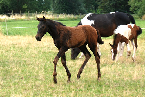 Candy C ist wie auch ihre Halbschwestern Silvana C und Caribic C ein großes, kompaktes, korrektes Stutfohlen mit einer optimalen Schulterlage und einer schönen Halsung. Sie zeigt sich schon in den ersten Lebenstagen sehr vital und zutraulich, ist dabei sehr trittsicher und gut im Gleichgewicht. Sie hat sehr raumgreifende, federnde und taktsichere Bewegungen - ihr Vater Cadeau Noir hat sowohl typmäßig als auch vom Bewegungsvermögen eindeutig seinen Stempel aufgedrückt. Candy C ist mit ihrer wunderschönen dunkelbraunen Jacke ohne Abzeichen ein echter Hingucker und wird sicher ihren Schwerpunkt in der Dressur haben, zeigt aber bereits jetzt auch schon eine top Doppelveranlagung. Das Fohlen steht zum Verkauf. Aufzucht ist hier möglich.