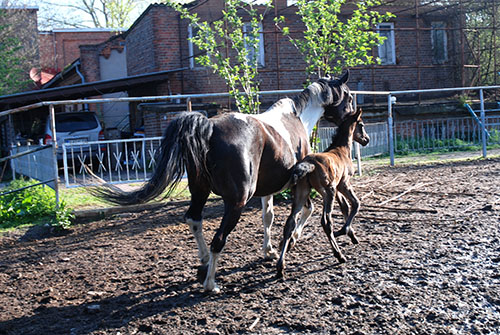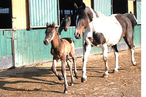 Nike brachte uns im Jahr 2009 ein qualitätsvolles, reinerbiges Braunscheckstutfohlen vom Prämienhengst Samaii (Old.). Silvana C wurde vom Zuchtverband hoch bewertet und prämiert. Sie wurde im gleichen Jahr BUNDESSIEGERFOHLEN des ZfdP in der Kategorie Pinto-Hunter. Diese Stute bereichert zwischenzeitlich unseren Zuchtbestand.