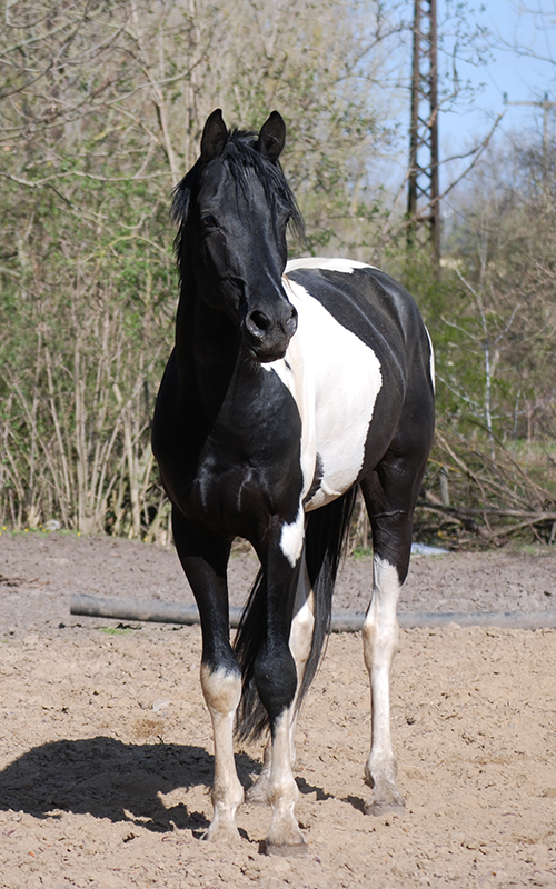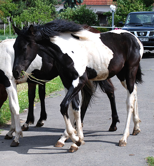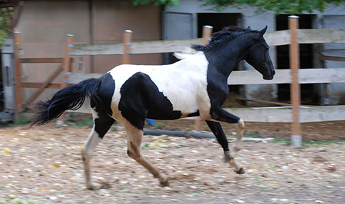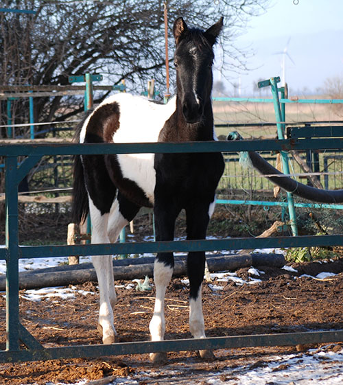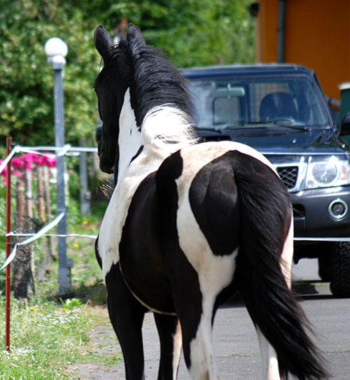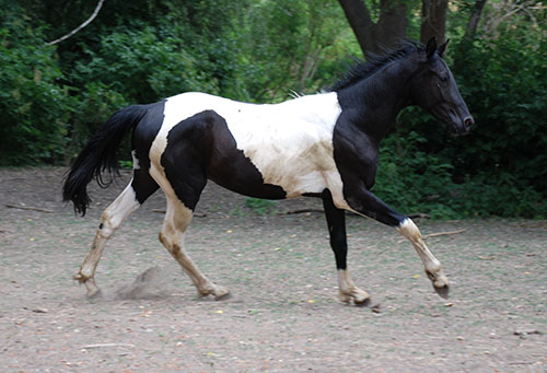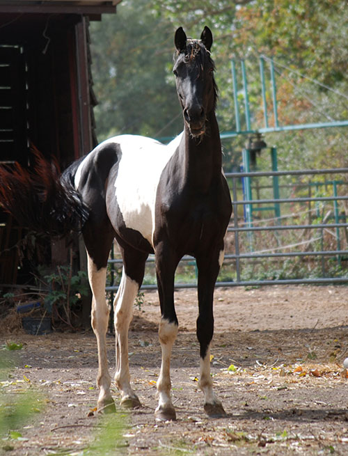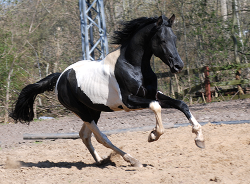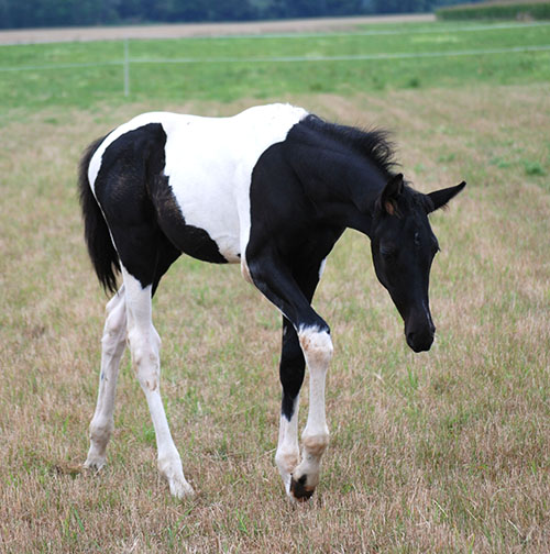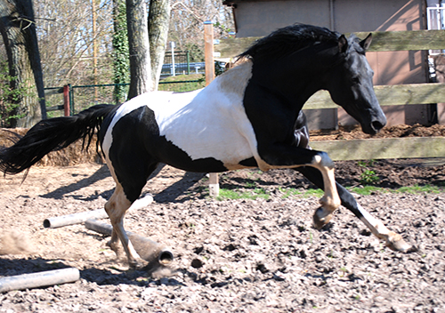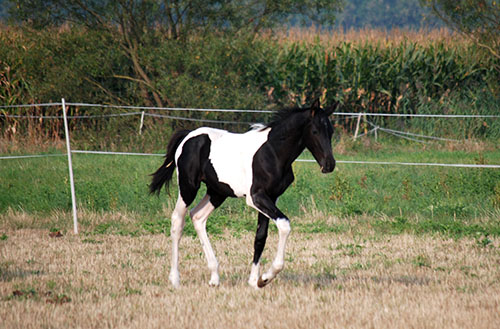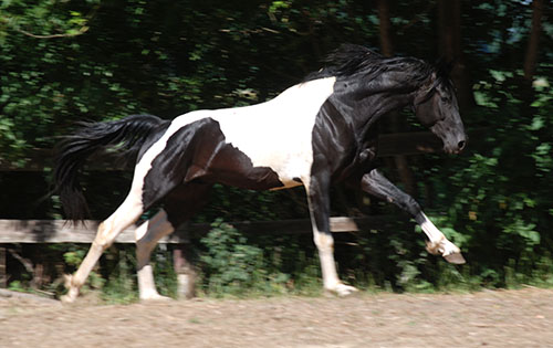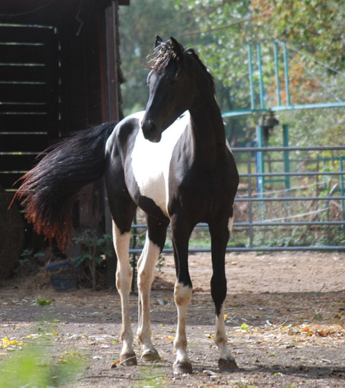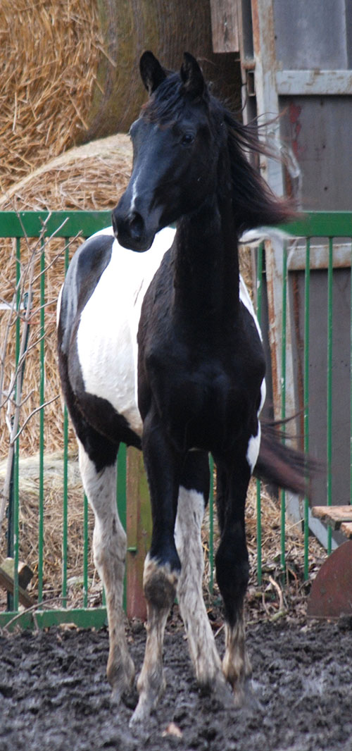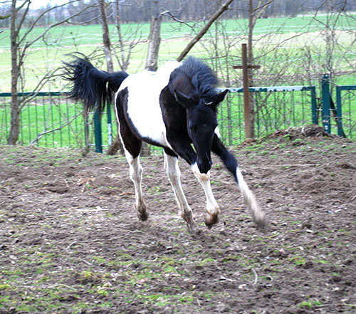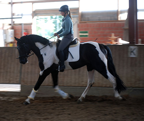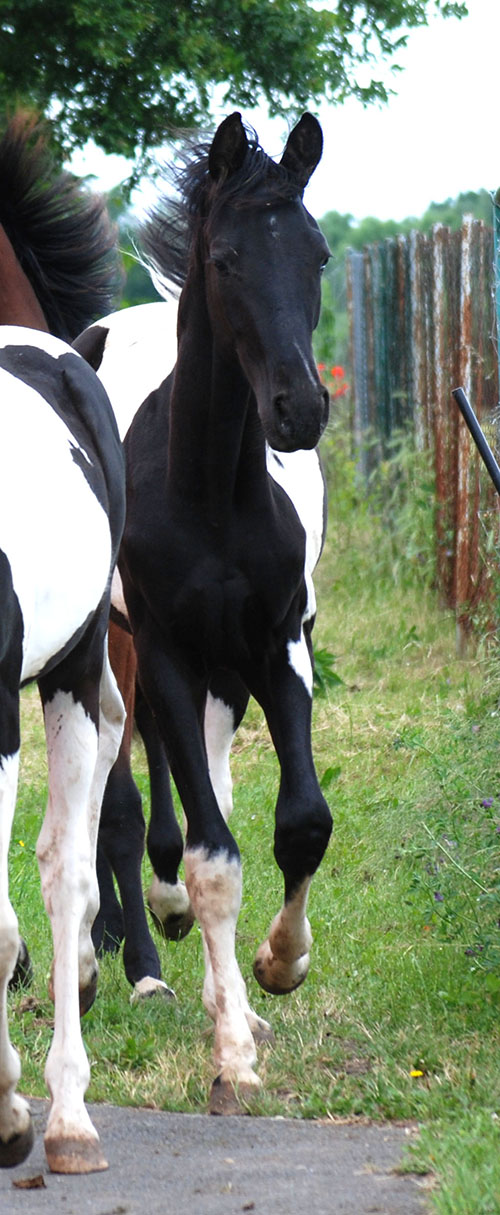 Zwischenzeitlich ist meine Shakira erwachsen geworden und hat jetzt ein Stockmaß von über 170 cm erreicht. Ihr Bewegungspotential lässt sich auch heute noch mit kaum einem anderen Pferd vergleichen. Auf dieser wunderbaren Stute ruhen viele meiner Hoffnungen auf einen deutlichen Zuchtfortschritt im Warmblut-Schecken-Bereich.
