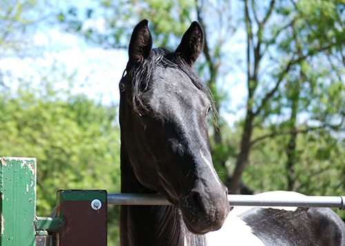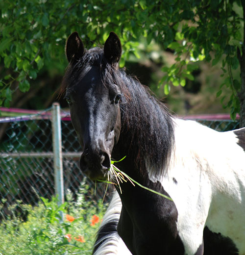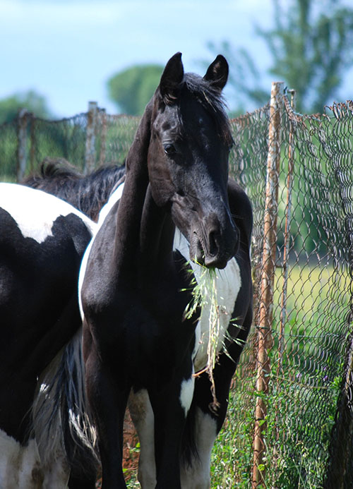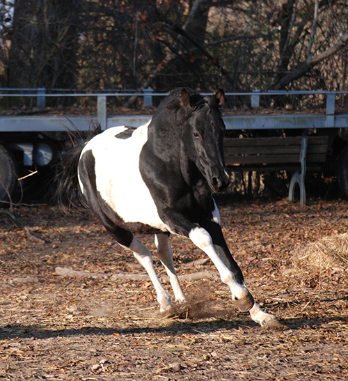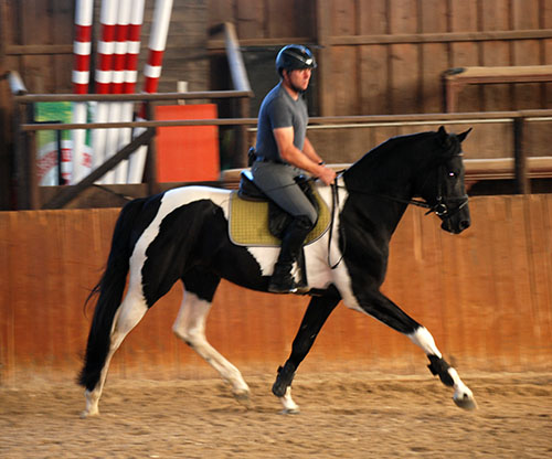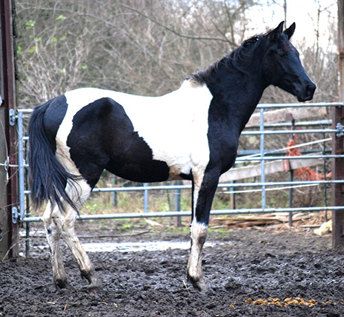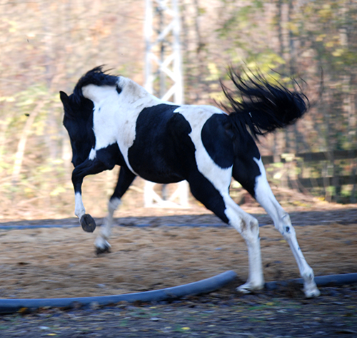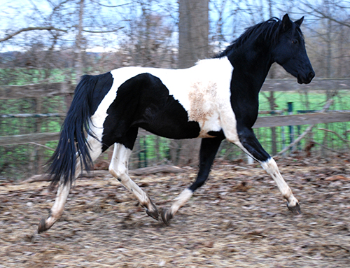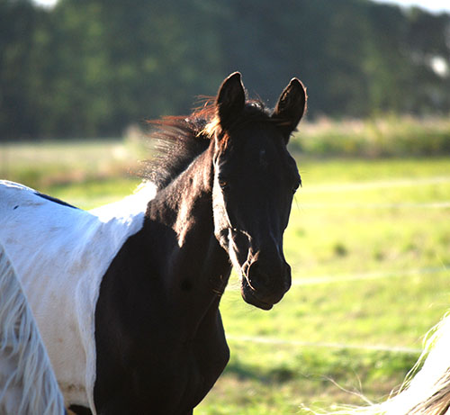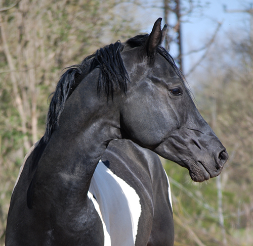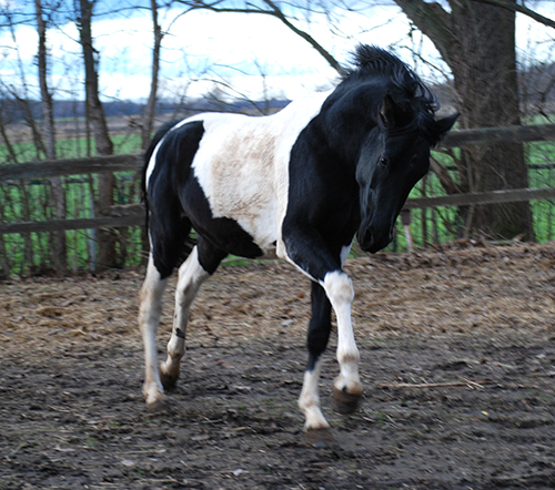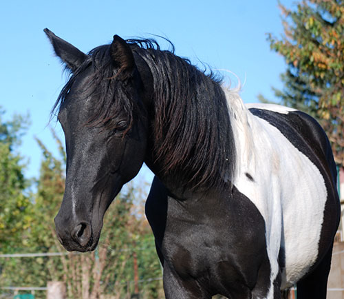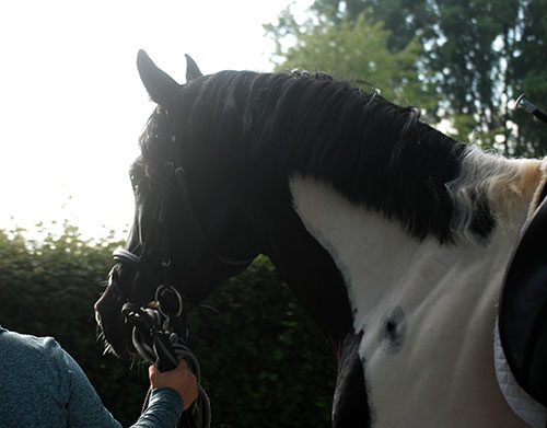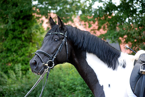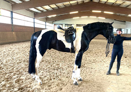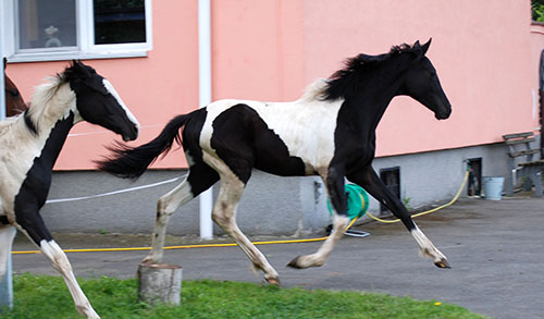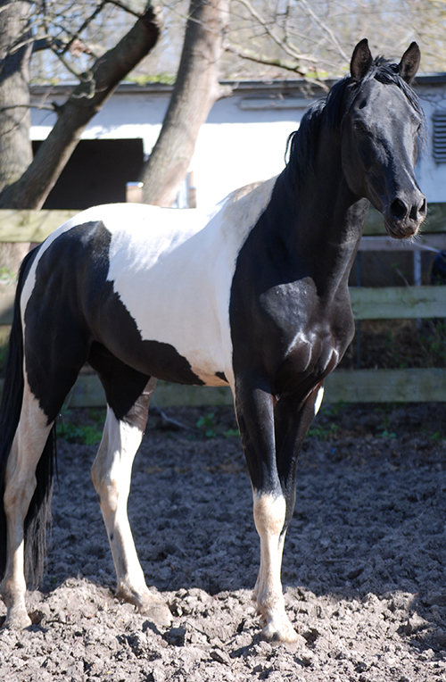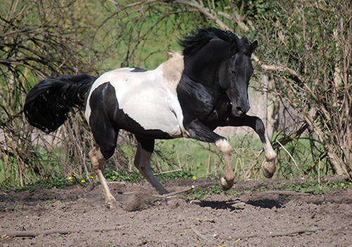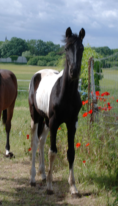 Zwischenzeitlich ist meine Shakira erwachsen geworden und hat jetzt ein Stockmaß von über 170 cm erreicht. Ihr Bewegungspotential lässt sich auch heute noch mit kaum einem anderen Pferd vergleichen. Auf dieser wunderbaren Stute ruhen viele meiner Hoffnungen auf einen deutlichen Zuchtfortschritt im Warmblut-Schecken-Bereich.
