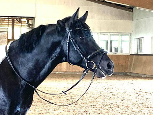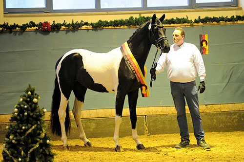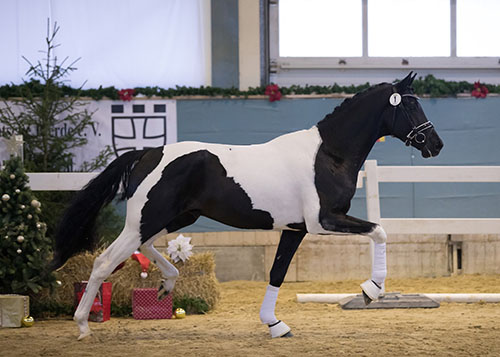 "...Cadeau Noir beeindruckt mit einem bestechenden Ausdruck sowie kraftvoller Bewegungsstärke. Sein männlicher Habitus unterstreicht seine strahlende Präsenz als Vererber und Spitzensportler.