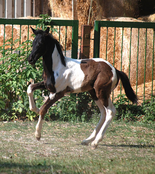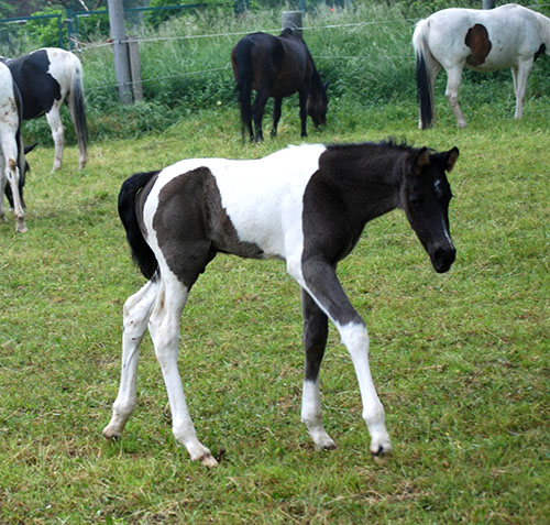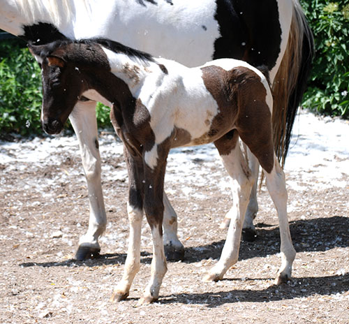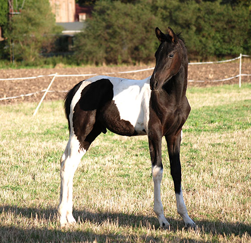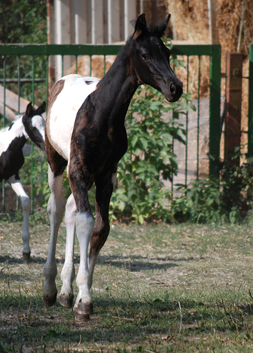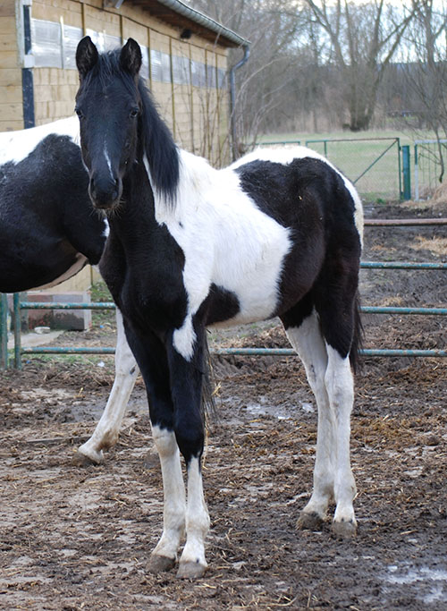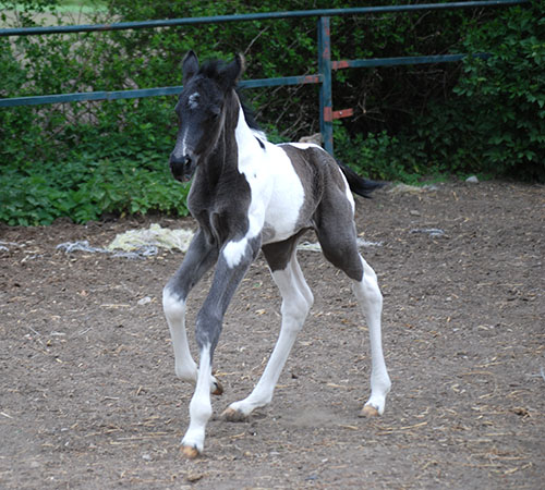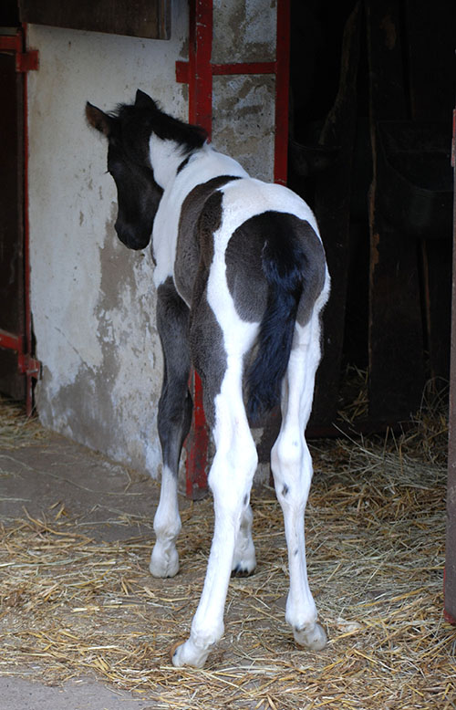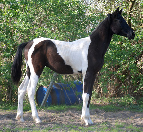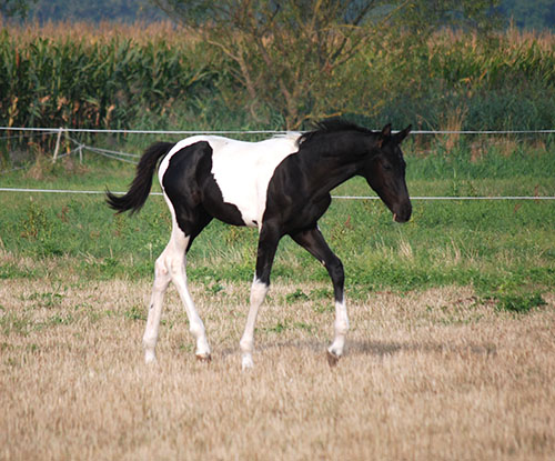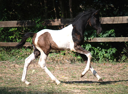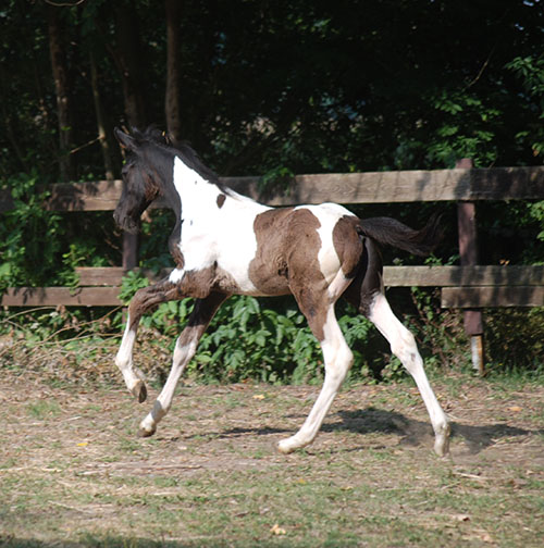 Briana C war das 1. Fohlen meiner 2005 in Hessen geborenen Braunscheckstute Shakira C, die von ihrer Bewegungsqualität her nach wie vor die absolut höchste Meßlatte für meine Zucht ist.