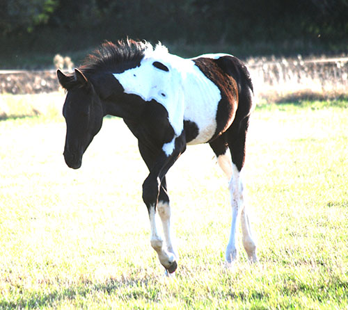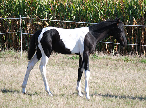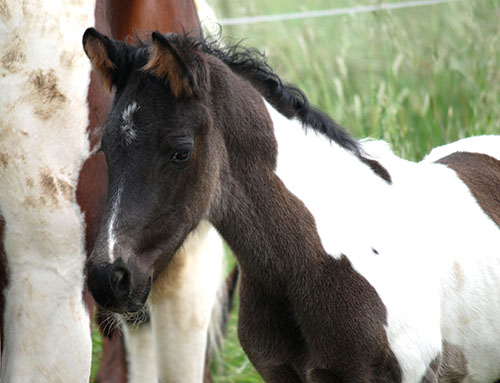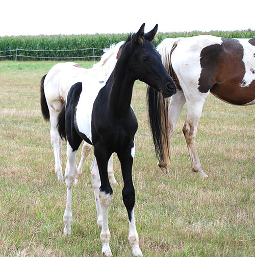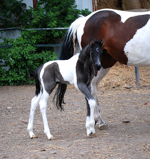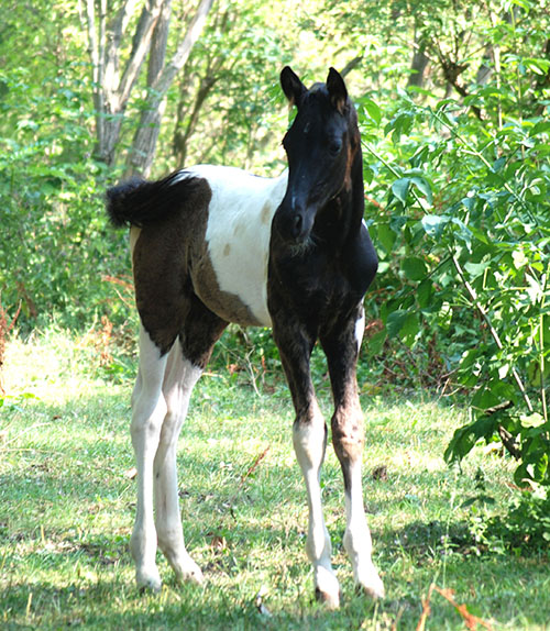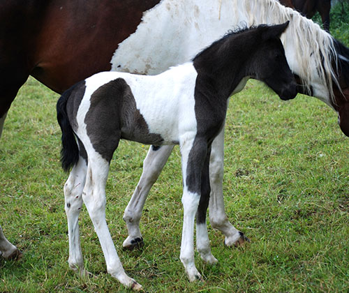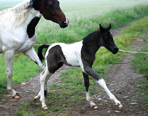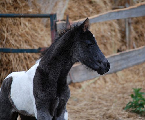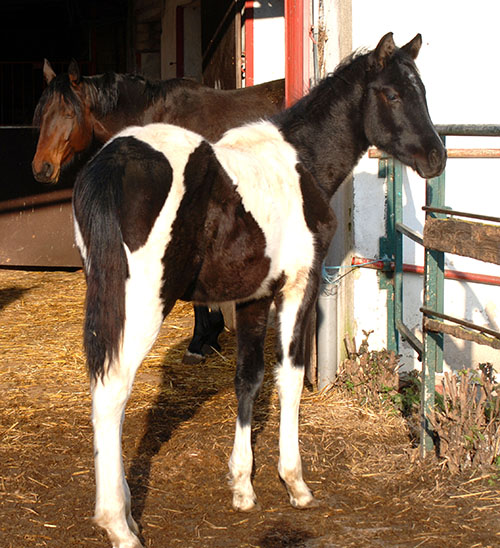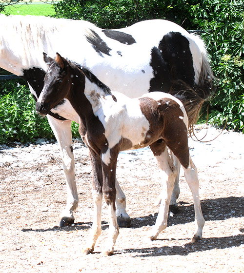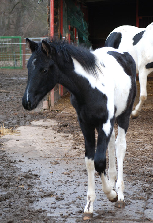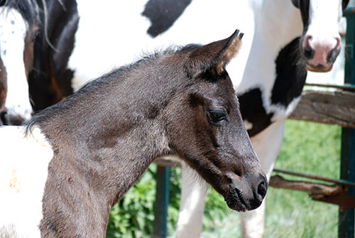 Briana C war das 1. Fohlen meiner 2005 in Hessen geborenen Braunscheckstute Shakira C, die von ihrer Bewegungsqualität her nach wie vor die absolut höchste Meßlatte für meine Zucht ist.