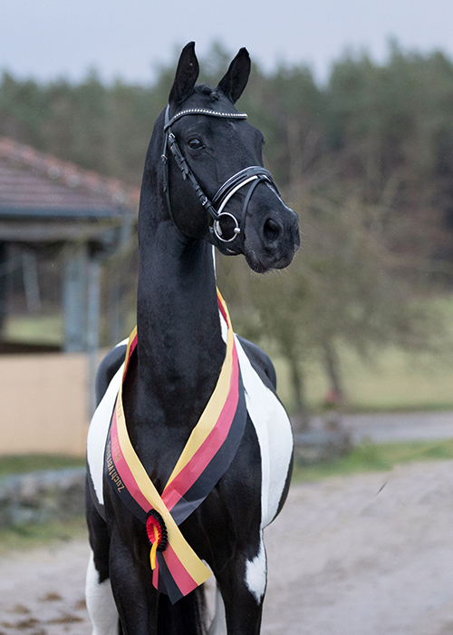 Deren Vater, der braungescheckte Hessische Elitehengst Samico F, ist dressurmäßig bis zur schweren Klasse erfolgreich und ein direkter Sohn des holländischen Stempelhengstes Samber.