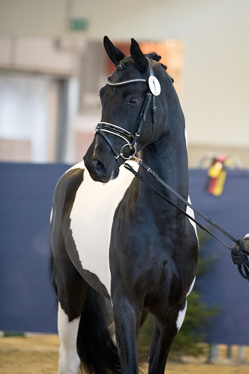 Typstark und bedeutend bewegt sich dieser Nachwuchsbeschäler, auf solidem Fundament von kraftvoller Hinterhand getragen. Seine Weiterentwicklung unter dem Sattel ist beeindruckend; mit seiner neuen Ausbilderin Hayley Beresford berechtigt er zu größten Hoffnungen auch auf internationalem Parkett. Blickpunkts erster Fohlenjahrgang fiel überragend aus – wissend, wie sich die Belissimos stets ausgesprochen positiv weiter entwickeln, setzen wir umso größere Hoffnungen in seine Nachkommen.
