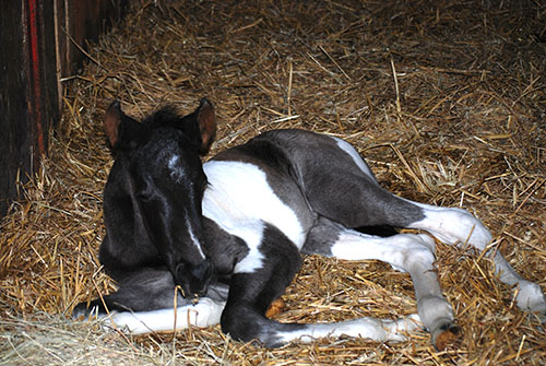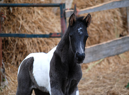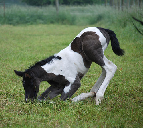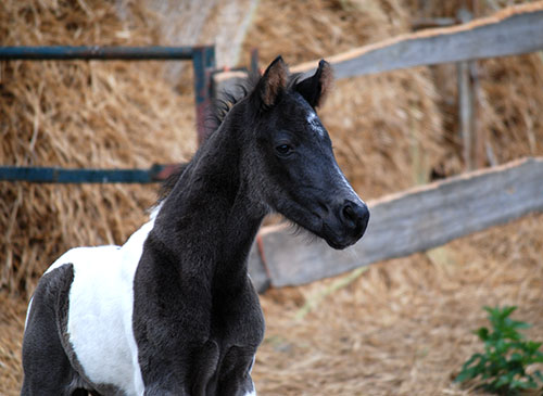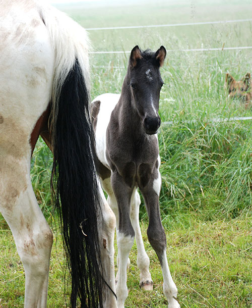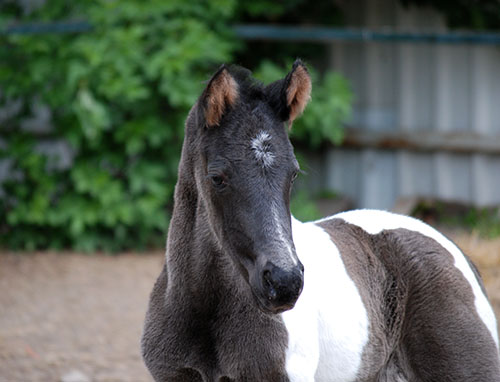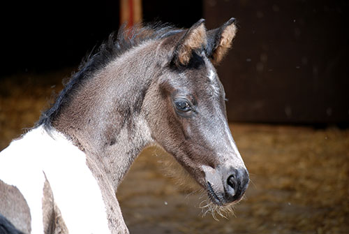 3 Wochen alt, ein echter Charmeur, dieser wunderschöne Rappscheckhengst!