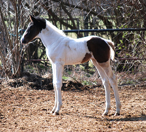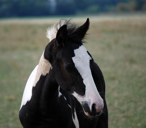 Lt. DNA-Test mischerbig für die Tobiano-Scheckung (statistisch 50% gescheckte Fohlen).
