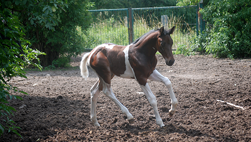 Vater von Curtis C ist unser reinerbiger Hengst Caleb (Colanyc x Ringo/Trak.), Mutter dieses bildschönen Braunscheckhengstes ist unsere PrSt. Sissy C (Samenco K x Camaro, Lehar, Ladykiller xx).