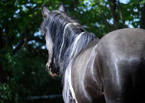 Shona C war das 3. Fohlen meiner Rappscheckstute What´s up, einer direkten Tochter des 171 cm großen Trakehner-Rappschecken Camaro. Ihr Urgroßvater ist der leider viel zu früh verstorbene Elite-Hengst-Anwärter Le Duc, ein nobler Trakehner in dunkelfuchsfarbener Jacke und Sohn des Dressurpferdevererbers Anduc (Elitehengst) aus der Trakehner-Stute Liga von Pregel. Le Duc selbst war siegreich in Dressurprüfungen bis Klasse S.