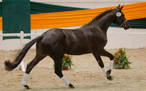 Dieser lackschwarze Edel-Sportler begeistert durch seinen ultramodernen blutgeprägten Habitus und seine herausragenden Grund-gangarten. Das beste aus Hörem! Schwarzgold vereint die besten Höremer Hengste aus drei Dekaden in sich. Die Kombination Imperio und Consul deutet seine aussergewöhnlichen Dressurqualitäten. Züchterisch hochinteressant dürfte Schwarzgold auch aufgrund seines hohen Vollblutanteils sein, der ihm diesen hochnoblen und trockenen Überguss des vollblutgeprägten Edelpferdes gibt. Schwarzgold wurde 2011 in Neumünster gekört und als Prämienhengst ausgezeichnet. In 2012 wurde er ebenfalls in Herning auf der Hauptkörung des Dask Varmblod für Dänemark gekört und absolvierte anschliessend den in Dänemark vorgeschrieben 10-Tage-Test in Vilhelmsborg.