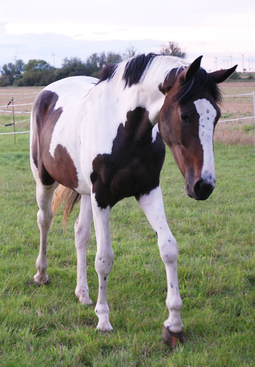 Dieses Pferd ist ein einzigartiges Juwel für die Farbzucht (in Deutschland eine Rarität im Warmblut-Schecken-Bereich) und aufgrund der Qualität gleichzeitig eine beachtliche Offerte für den Leistungssport. Die außergewöhnlich gute Veranlagung dieses modernen Stutfohlens wurde von der Zuchtkommission des ZfdP mit einer hohen Bewertung und einer Prämierung belohnt.