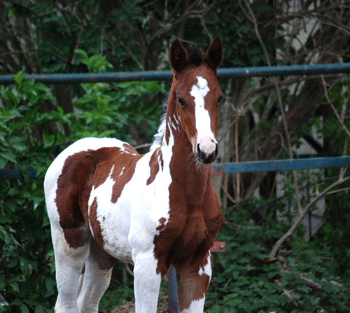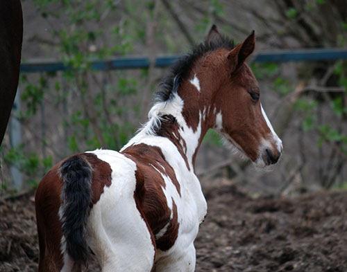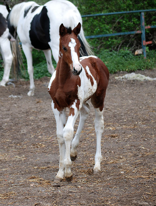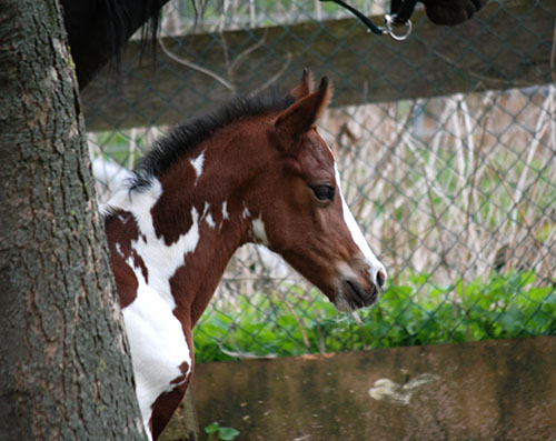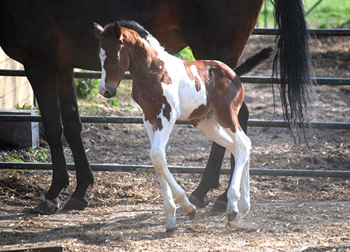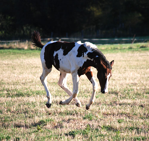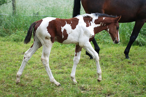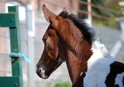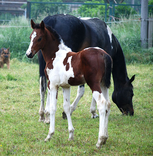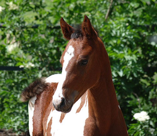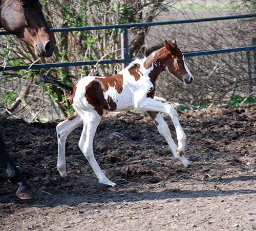 Nike brachte uns im Jahr 2009 ein qualitätsvolles, reinerbiges Braunscheckstutfohlen vom Prämienhengst Samaii (Old.). Silvana C wurde vom Zuchtverband hoch bewertet und prämiert. Sie wurde im gleichen Jahr BUNDESSIEGERFOHLEN des ZfdP in der Kategorie Pinto-Hunter. Diese Stute wird hier aufgezogen und soll künftig unseren Zuchtstutenbestand bereichern.