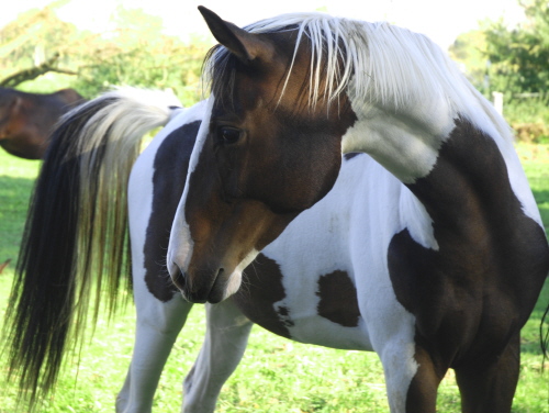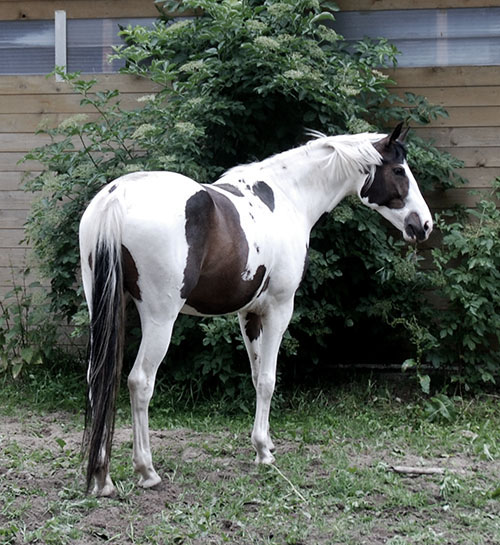 | Farbe: | Braunschecke (Tobiano) |