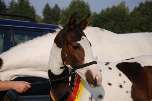Sie qualifizierte sich damit zur Bundeszuchtschau des ZfdP und wurde hier Bundeschampioness 2008, setzte sich damit auch gegen die starke Hengst-Konkurrenz durch. Die Stute ist – wie auch ihre Mutter It´s Nanook – reinerbig für die Tobiano-Scheckung, das heißt, sie bringt auch bei Anpaarung mit einfarbigen Hengsten garantiert bunte Nachkommen. Zuchtfortschritt und Farbgarantie!